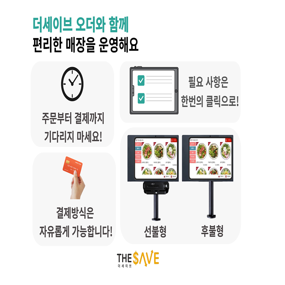 테이블오더와 권선구카드단말기는 태블릿 PC를 기반으로 진행합니다 요즘은 결제나 그런부분을 직접 손님이 하는 경우가 많기 때문에 예전처럼 매장을 운영할 때 사장님이 항상 카운터에 상주해 있지 않아도 되고 또한 분실을 우려할 염려가 없습니다. 젊은 트렌드에 사람들은 편하게 자리에 앉아서 결제를 할 수 있는 방식을 조금더 선호하는 경향이 있습니다.
